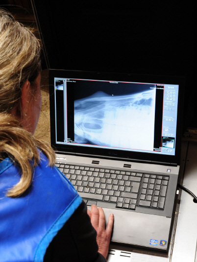 Wir verfügen über ein modernes digitales Röntgensystem. Dies ermöglicht eine sofortige Diagnose oder Verlaufskontrolle vor Ort. Durch den Einsatz eines modernen HF Röntgengerätes können wir streustrahlungsarm und mobil Röntgen.